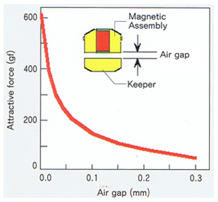 Fig 1-1c The relationship between air gap and retentive force of the magnetic attachment.